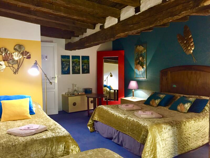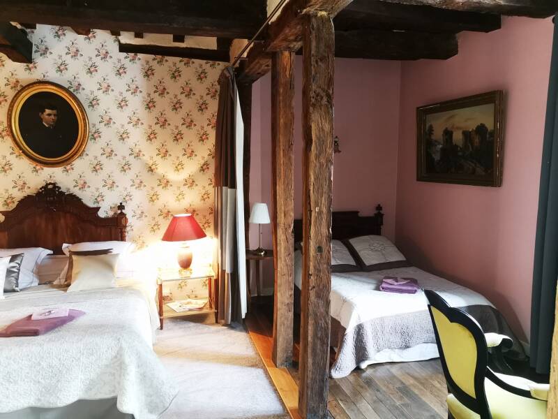 Idéale pour les familles, cette grande chambre familiale vous transporte à l'époque de la Belle Époque avec son décor raffiné. Située au premier étage de la maison principale, elle offre tout le confort moderne dans un cadre historique.