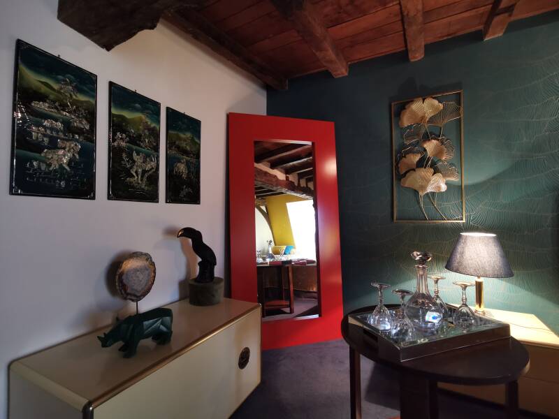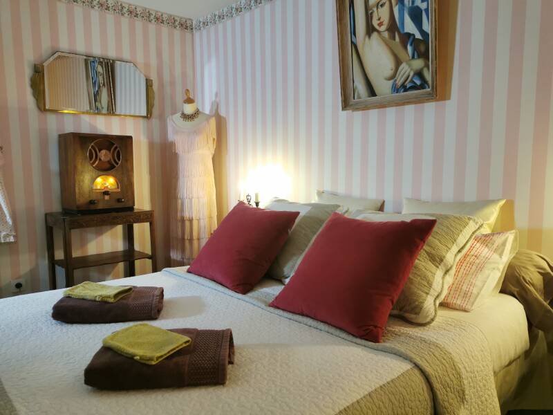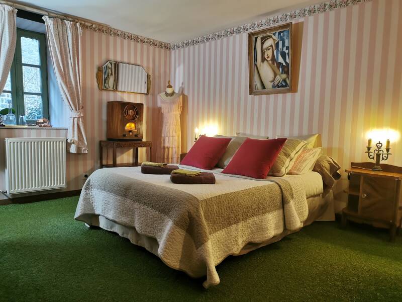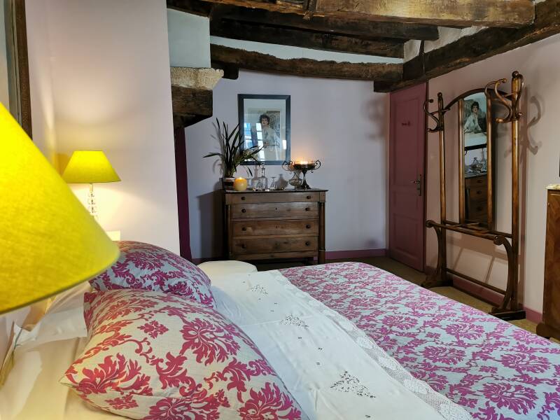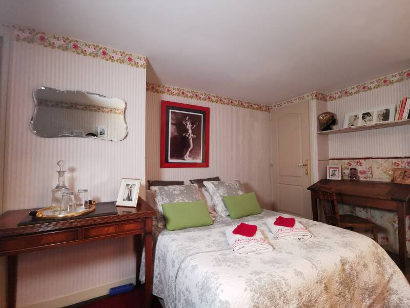 Plongez dans l'univers glamour de Joséphine Baker dans cette chambre cosy. Située dans l'ancien atelier des tisserons, elle offre une ambiance intimiste avec un accès direct au jardin, parfait pour une escapade romantique.